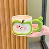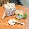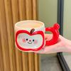 Geburtstagsgeschenk niedlicher handbemalter Apfel Keramiktasse mit Deckel Löffel Trinkbecher Mädchen Geschenkbox