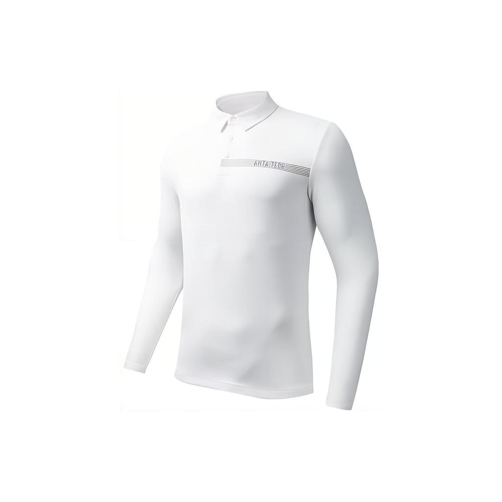 Anta Training Series Letter Pullover Long Sleeve Polo Shirt Men tops Pure-White 152347409-4