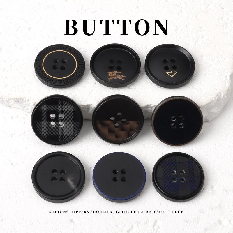 5 Stück bedruckte Harzknöpfe mit vier Ösen, High-End-Blazer, schwarzer Knopfmantel, Trenchcoat, runde Knopfaccessoires.