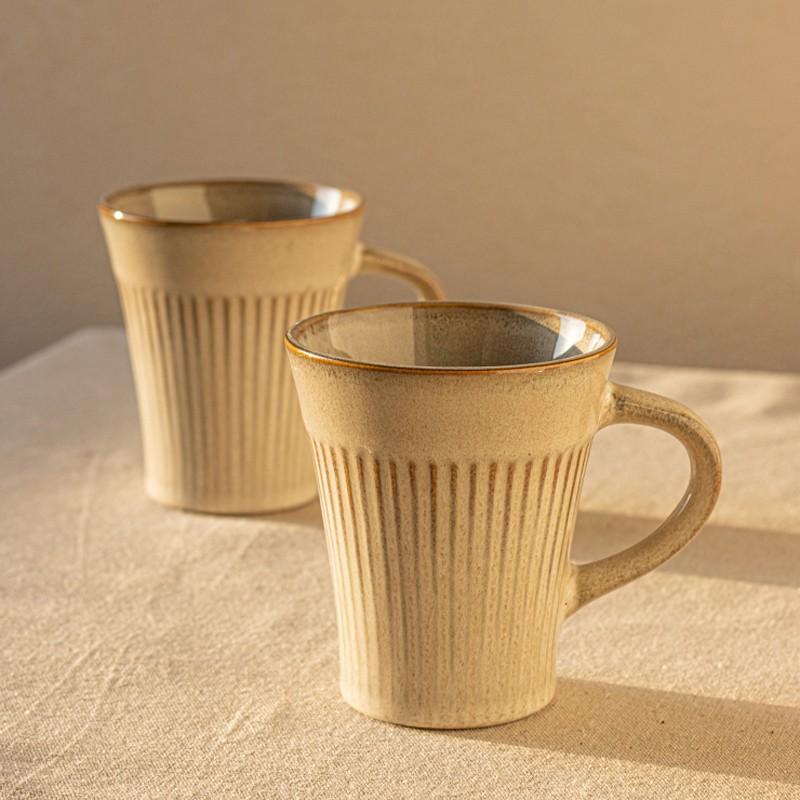 Super gutaussehende Retro-Keramiktasse mit Ofenbrandglasur, vertikales Muster, Becher mit Henkel, Hängeohr-Tasse, Haushalts-Frühstückstasse, Wasserbecher, Teetasse