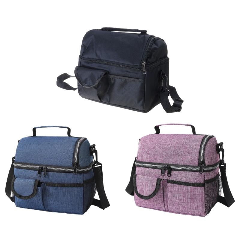 Thermal Lunch Bag with Double Compartments Insulated Cool Bag Waterproof Oxford Fabric for Office School Camping