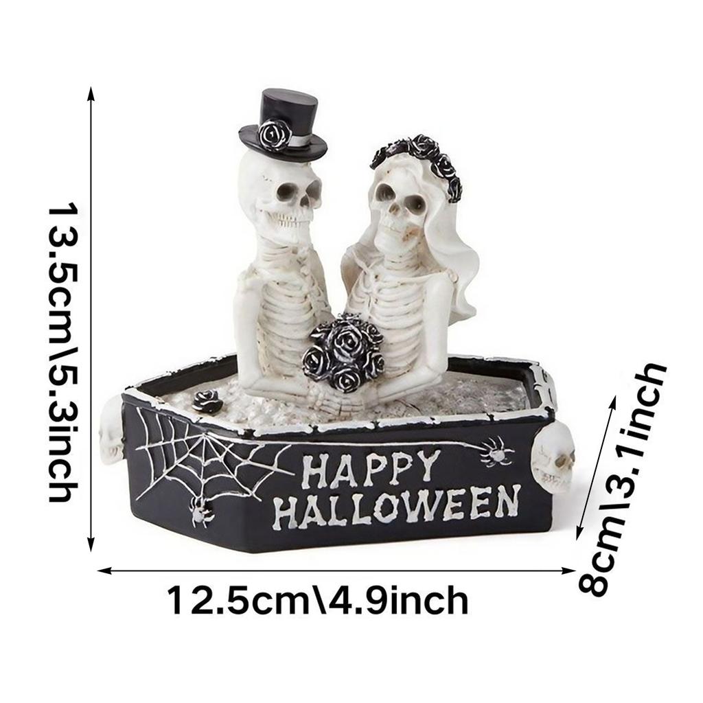Halloween Skeleton Couple Resin Ornament Gothic Skull Couple Home Decor Spooky Atmosphere Props