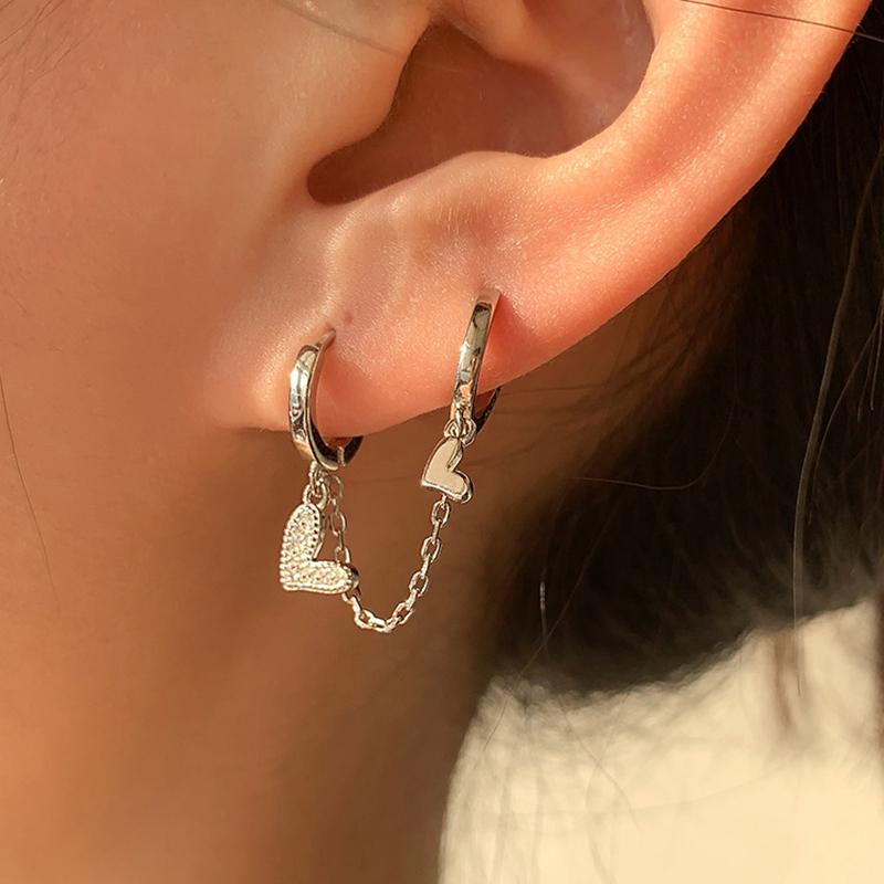 Punk Fashion Ear Studs Tassel Chains Earrings For Women Y2k Style Crystal Star Love Heart Drop Earrings Piercing Jewelry