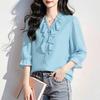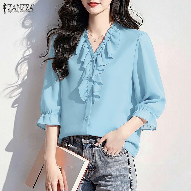 ZANZEA Damen Rüschen V-Ausschnitt Locker Lässig 3/4 Ärmel Bluse