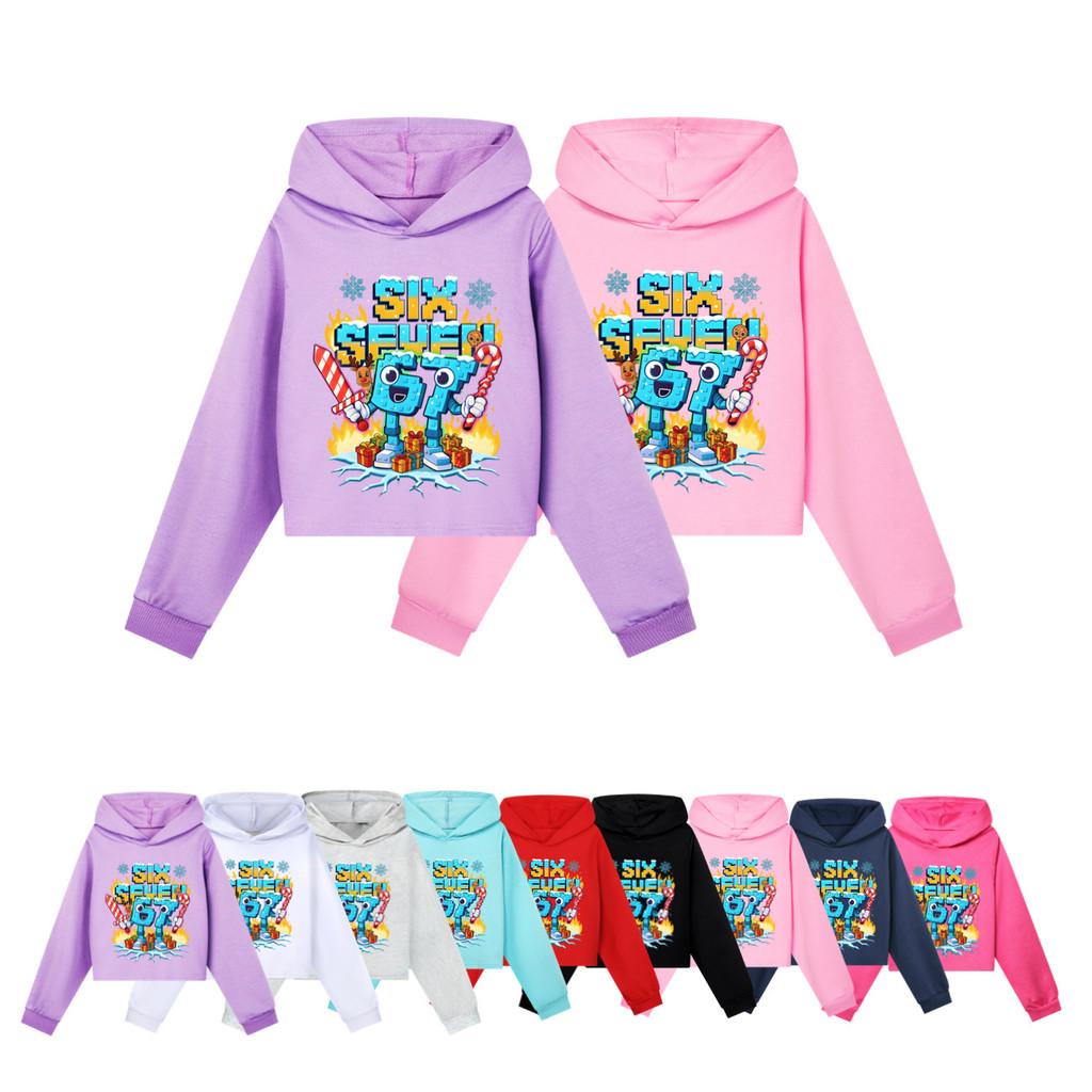 5193 Kinder Mädchen Steal a Brainrot 67 Six Seven Bedruckt Lässige Langarm Kapuzenpullover Sweatshirt Oberteil