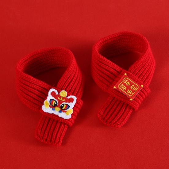 Yousheng Red Knitted Cat Scarf Chinese New Year Pet Scarf Embroidered Fortune Scarf for Cats Small Dogs Spring Festival Dress-up Accessory