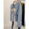 Blue lace lace-up lapel long-sleeved knitted sweater cardigan jacket women's new early autumn top