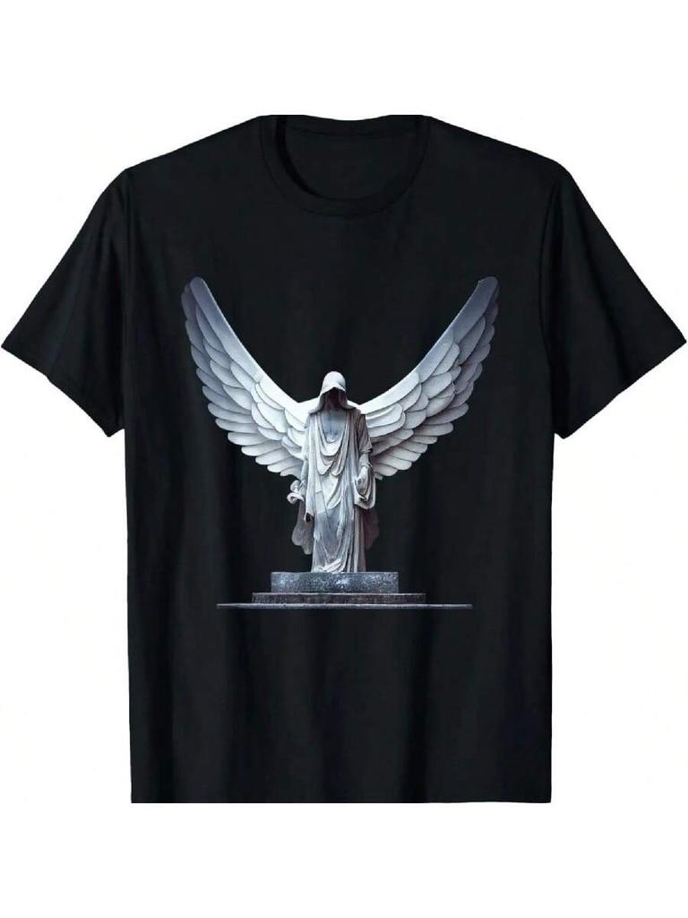 Weißes T-Shirt mit einer Statue eines Todesengels in einem griechischen Tempel
