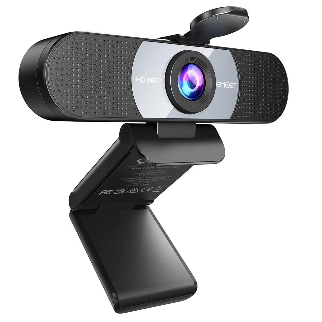 EMEET C960 FHD 1080P 2 Wide Two with Privacy Fixed USB External Automatic Light Tripod Windows macOS and Gray Webcam, 30FPS, Megapixels, 90° Angle,