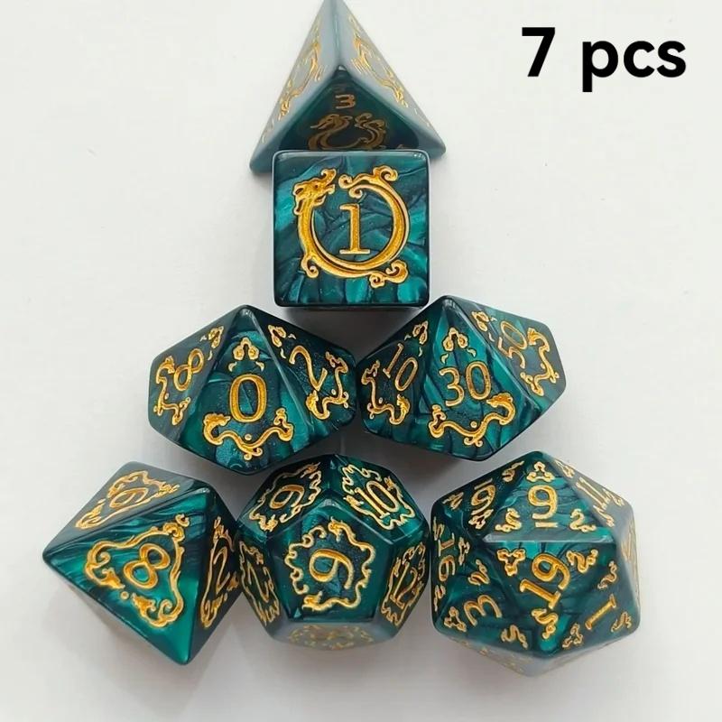 7PCS/Set Polyhedral Dice Multi Colors Dragon Pattern TRPG RPG DND Acrylic Dice For Role Playing Games Entertainment Board Game