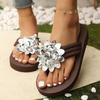 Modische Damen-Keilabsatz-Pantoletten mit dicker Sohle, modische Blumendekoration, bequeme Hausschuhe, lässige, leichte Strand-Flip-Flops