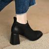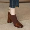 Mode Retro Gespleißte High Heels Damen 2024 Herbst Gestrickt Gespleißte Quadratköpfige High Heels Pendler Damenschuhe Zapatos Mujer Traf