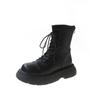 Mode Kurze Stiefel Damen 2024 Neu Britischer Stil Dicksohlige Fly-knit Elastische Stiefel Mittelhoch Absatz Dünne Stiefel Ins Dünne Schuhe Hoch