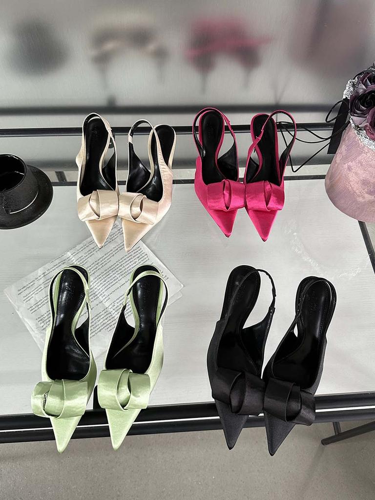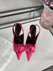Mode Mode Damen Sandalen Spitzschuh Sommerkleid Schuhe Dünne Hohe Absätze Fersenriemen Beige Rosa Grün Schwarz Satin Party Sandalen Pantoletten