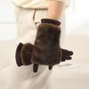 Solid Color Women Winter Gloves Rabbit Faux Fur Thermal Mittens Fashion Suede Gloves Girl