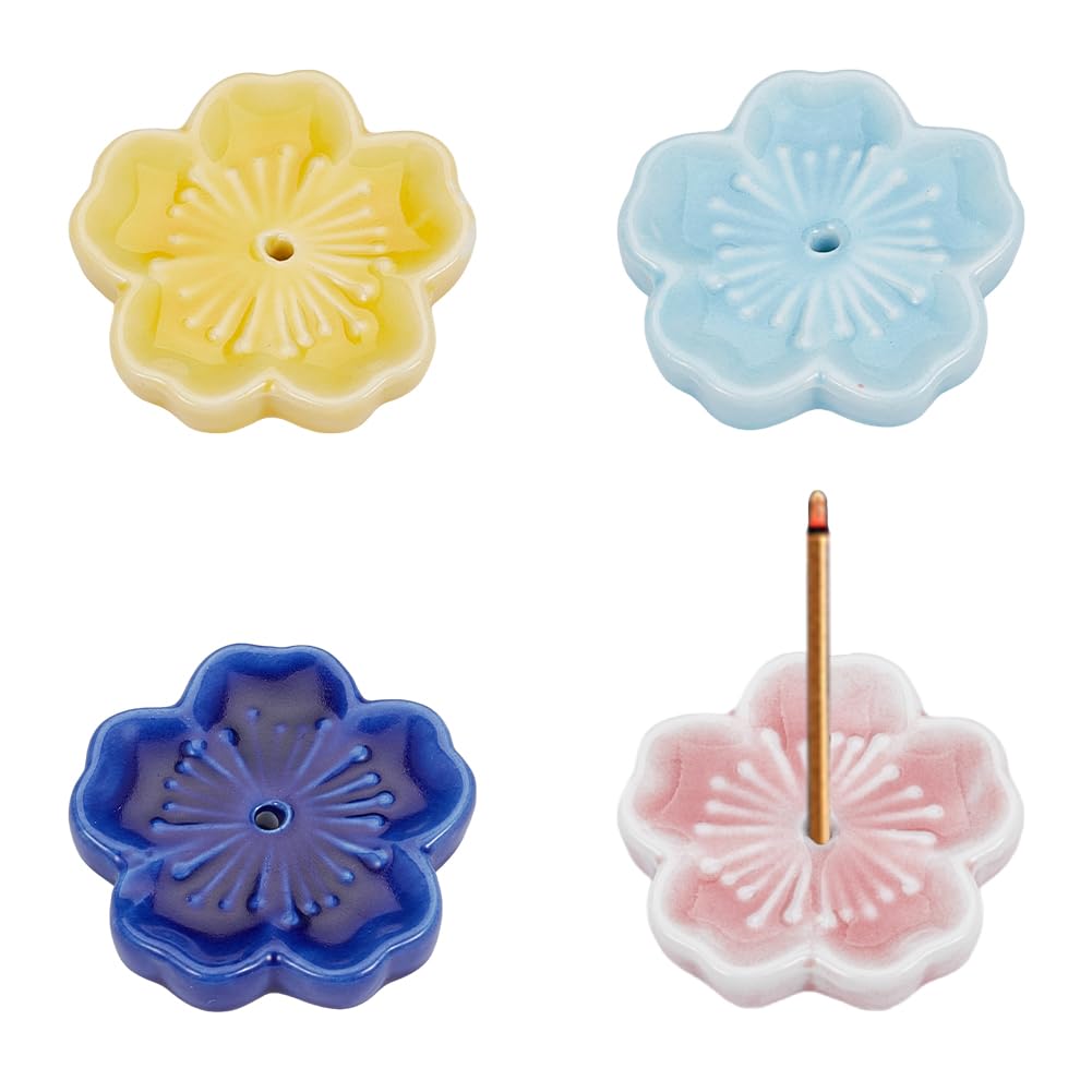 OLYCRAFT Cherry Blossom Ceramic Incense Holder, 45x47x8mm, 4 Colors, Japanese Style Decor, Ideal for Meditation and Relaxation, Perfect as a Gift or