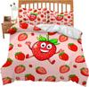 Strawberry Duvet Cover Set Queen King Size Girls Pink Quilt Cover Cartoon Fruit Bedding Set Girls Teenagers Suitable 3 Pcs