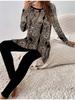 Euroamerikanische Mode 3D-Blumendruck Damen Vier-Jahreszeiten Langarm-T-Shirt + Lange Hose Zweiteiliges Set. Perfektes Geschenk für Neujahr & Weihnachten