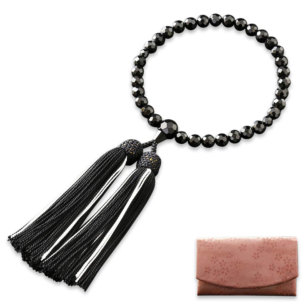 Kyoto Butsudan Hayashi Women's Prayer Beads, Pure Silk with Two-Tone Tassel and Black Onyx Cut Glass [Onyx] [Prayer Beads Bag Set] W-046, Kyoto,