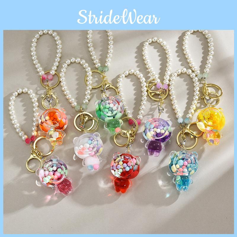 Cute Bead Bear Key Holder With Acrylic And Pearl Chain For Kids Birthday And School Gift