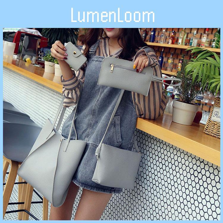 Women 4pcs Leather Handbag Lady Shoulder Bag Tote Purse Messenger Satchel Set