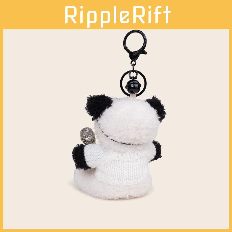 Musikalischer Pilot Panda Plüsch Schlüsselanhänger mit Gitarre und Mikrofon zum Verschenken und Dekorieren