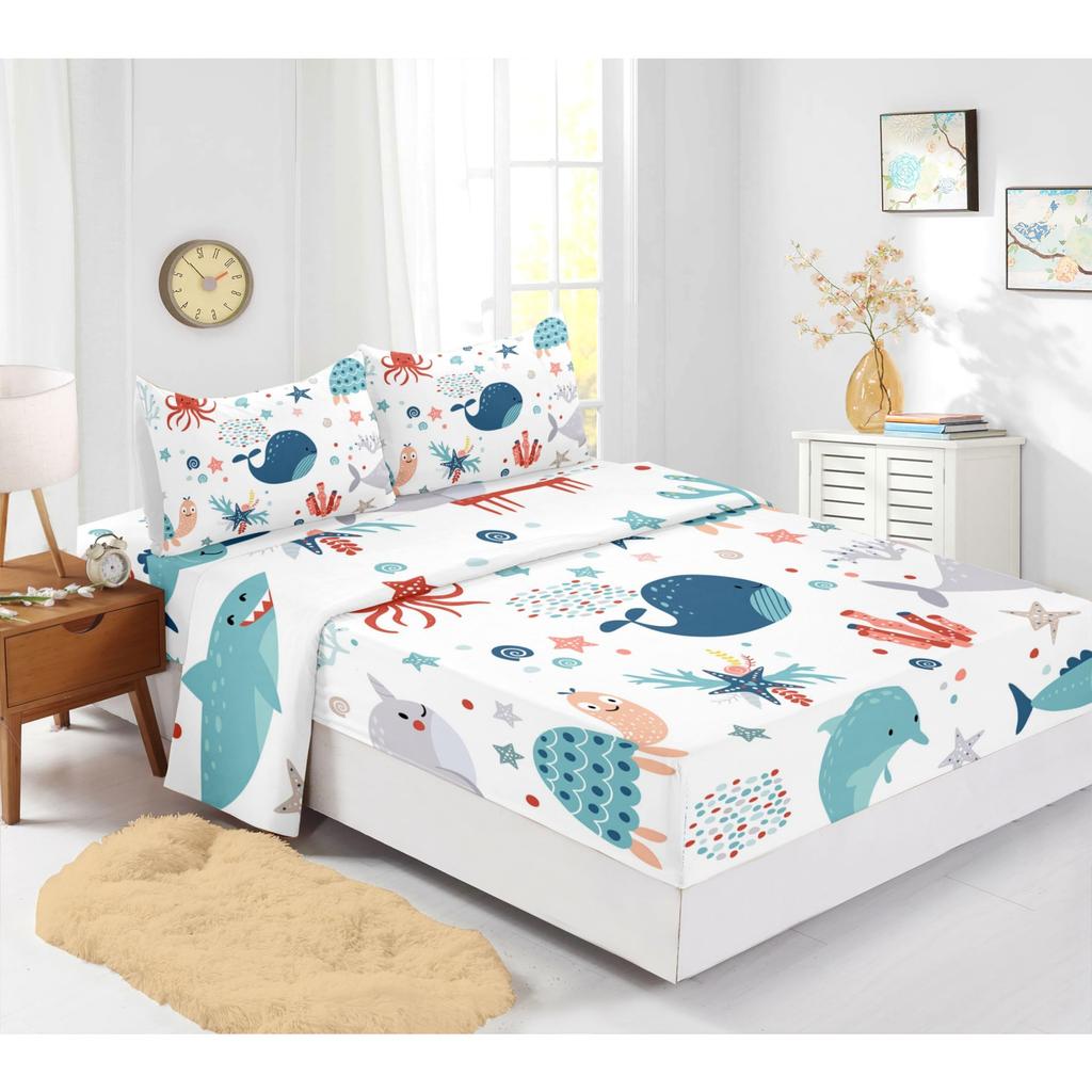 Cartoon Ocean Shark Whale Pattern Sheet Four-piece Bedding Set Bedroom Dormitory Bedding