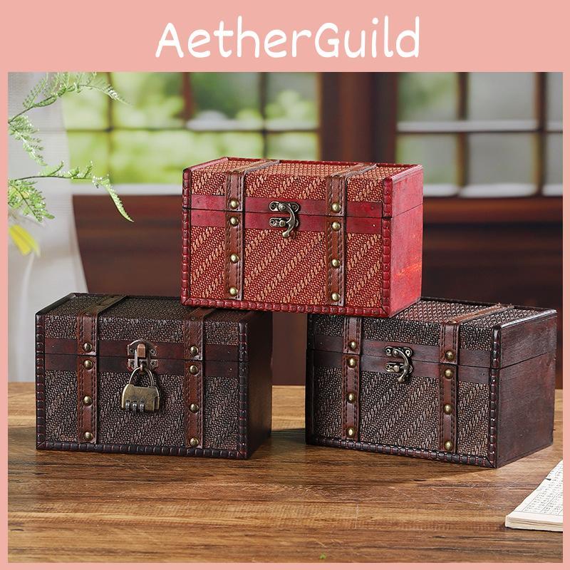 Password Protected Wooden Medicine Box Retro Woven Lockable Organizer Car Storage