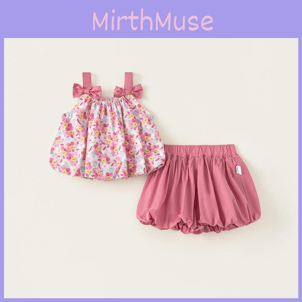 Süßes florales Muster Schleifendesign Schulterträger Sommer Top und Shorts Set für Kinder Spielbekleidung