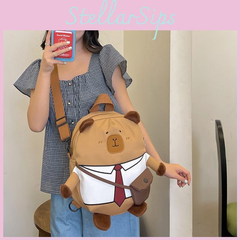 Ins Capybara Panda Cartoon Backpack With Padded Laptop Pocket For 10in Devices And Daily Travel