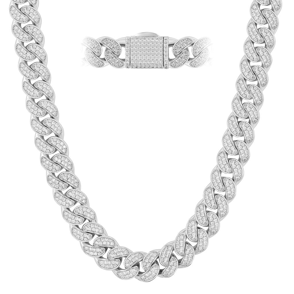 KRKC&CO Panzerkette mit Zirkonia und Miami Cuban Kette, 12mm, Weißgoldplattiert, CZ Diamanten, Dicke Herrenkette, Choker, Hip Hop, Tänzer,