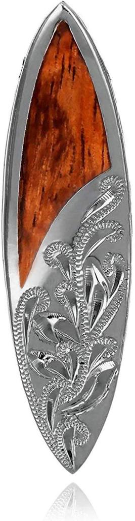 Leilani Hawaiian Koa Wood Surfboard Pendant Necklace for Men, 925 Sterling Silver (Chain Not Included)