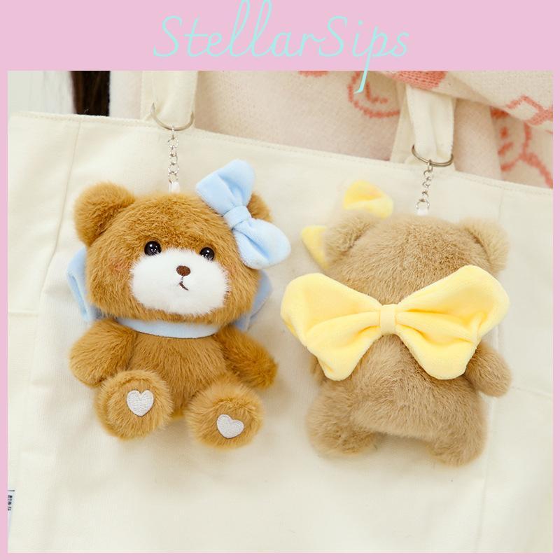 Lovely Fluffy Teddy Bear Plush Toy Keychain With Soft Fur And Bowknot Design