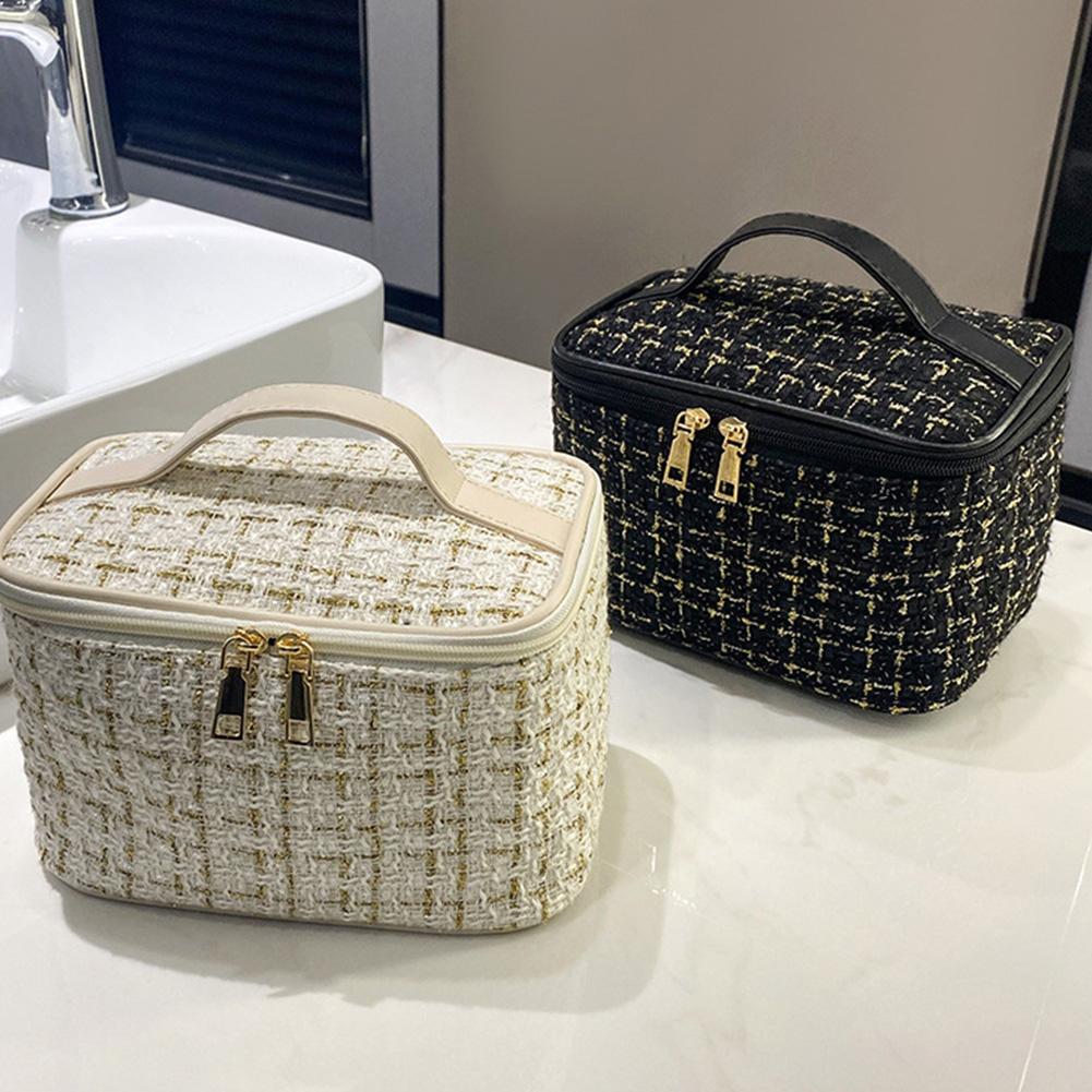 New Women's Bag Large Capacity Portable Travel Toiletry Bag New Plaid Portable Small Fragrance Makeup Bag Go out Makeup Bag