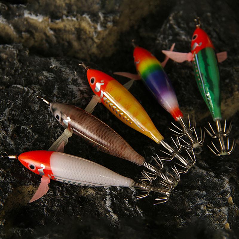 1Pc 75mm 5.5G New Luminous Wood Shrimp Floating Squid Bait Artificial Bait Rocket Squid Wood Shrimp Lure Sea Fishing Lure