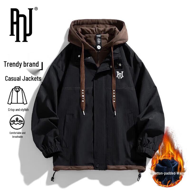 PNJ Herren Kapuzenjacke im Faux-Zweiteiler-Look, locker geschnitten, mit Fleecefutter, dick