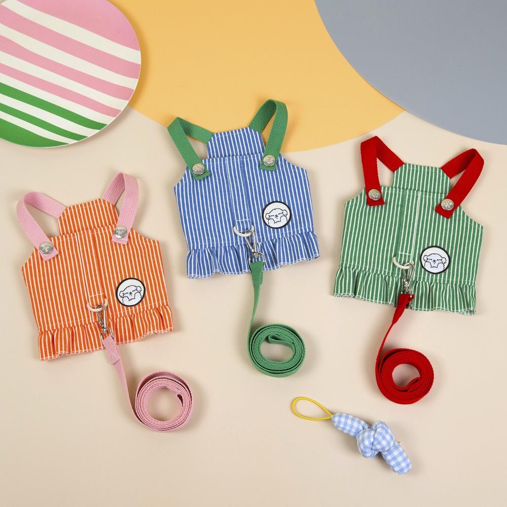 Korean Striped Pet Chest Back Traction Rope Cartoon Dog Harness Creative Pet Clothing Pet Supplies