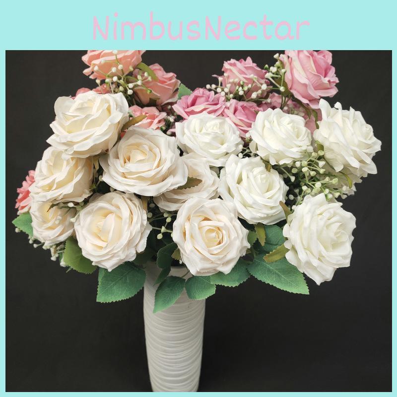 Silk Rose Realistic Bouquet 9 Stems Wedding Photography Props Decoration Home