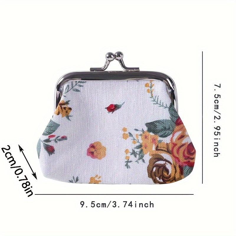 1pc Kiss Lock Coin Purse, Women's Stylish Small Canvas Floral Pattern Storage Bag Ofr Keys & Lipstick