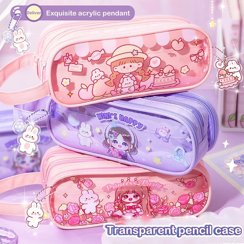 Kawaii Transparentes Tragbares Federmäppchen Multifunktional Mehrschichtig Stiftbox Aufbewahrungstasche Schul- Bürobedarf Schreibwaren