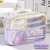 Transparente vierlagige Stiftetasche mit großer Kapazität Studenten-Schreibwaren-Aufbewahrungstasche Schulbürobedarf Schreibwaren