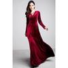 Women's Long Sleeve Velvet Maxi Dress - Elegant V-Neck Autumn Winter Evening Gown