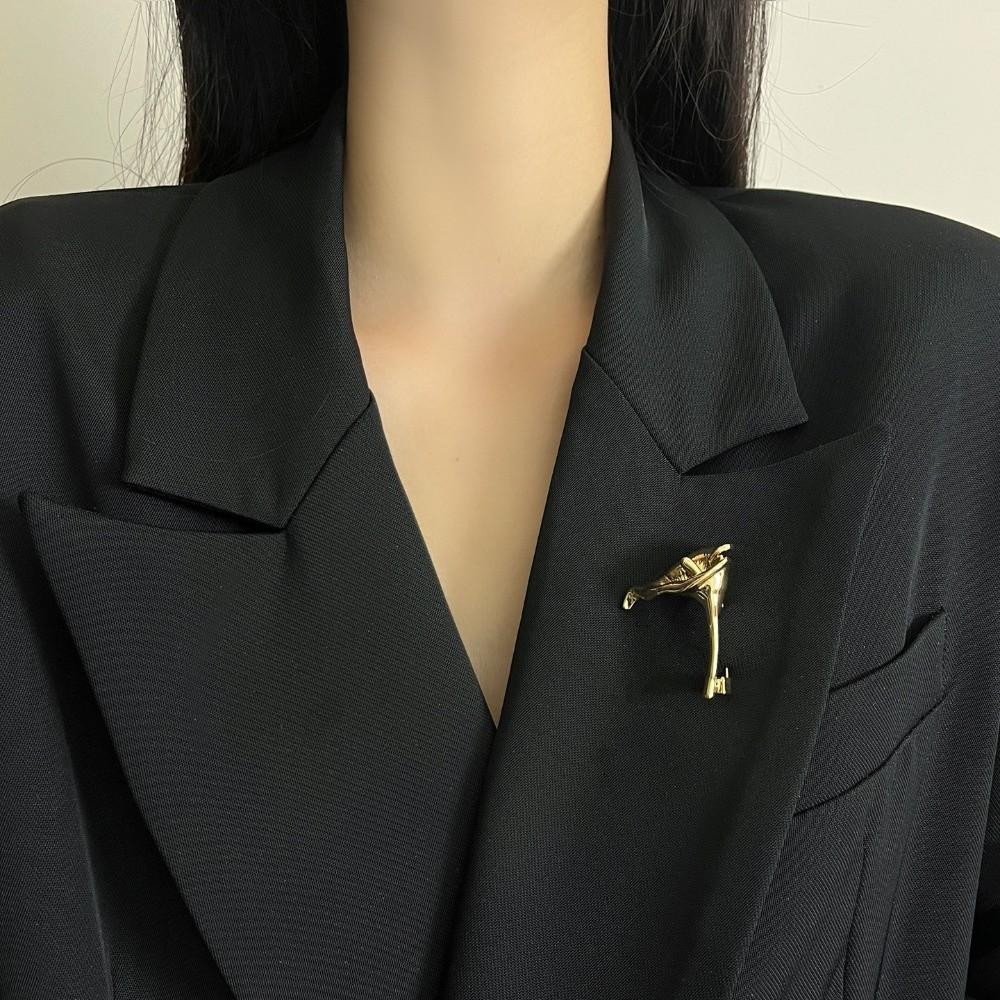 Corsage Ornament Calla Brooch French Style Metal Glossy Brooch Uniform Zantedeschia Pins Party