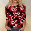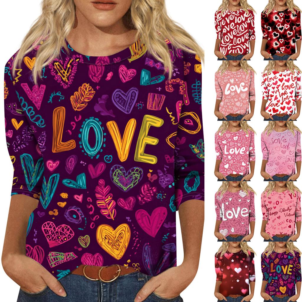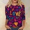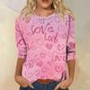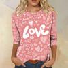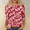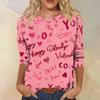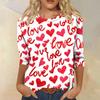 Damen Modisches Lässiges Dreiviertelarm Valentinstag-Druck Rundhals Pullover-Oberteil
