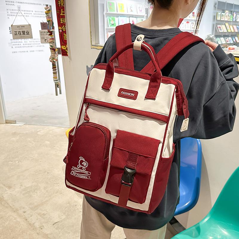 Damen Rucksack mit großem Fassungsvermögen, tragbar, Campus, Student, Schultasche, Farbkontrast, Reise-Rucksack