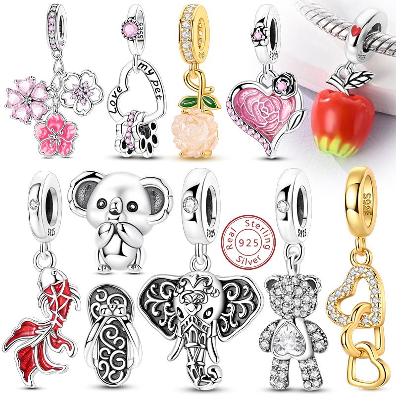 Charms Copper Shining Love Bear Elephant Apple Cherry Rose Charms Beads Fit Original Bracelet Pendant Woman Jewelry