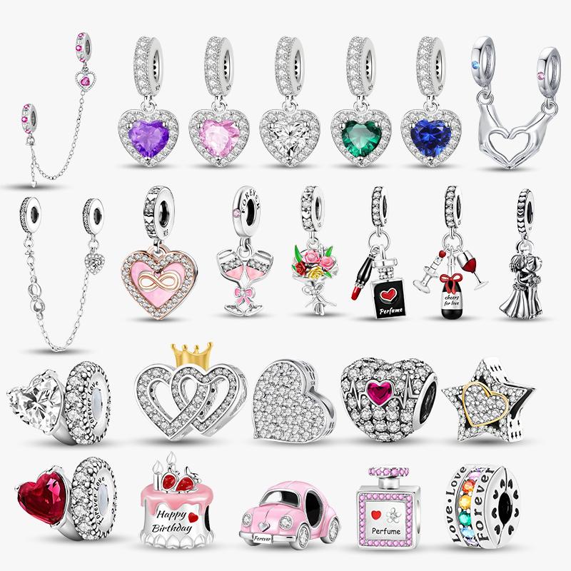 Copper Zircon Red Love Heart Lover Series Charms Beads Fit Original Pan Bracelet Bangles Diy Fine Jewelry