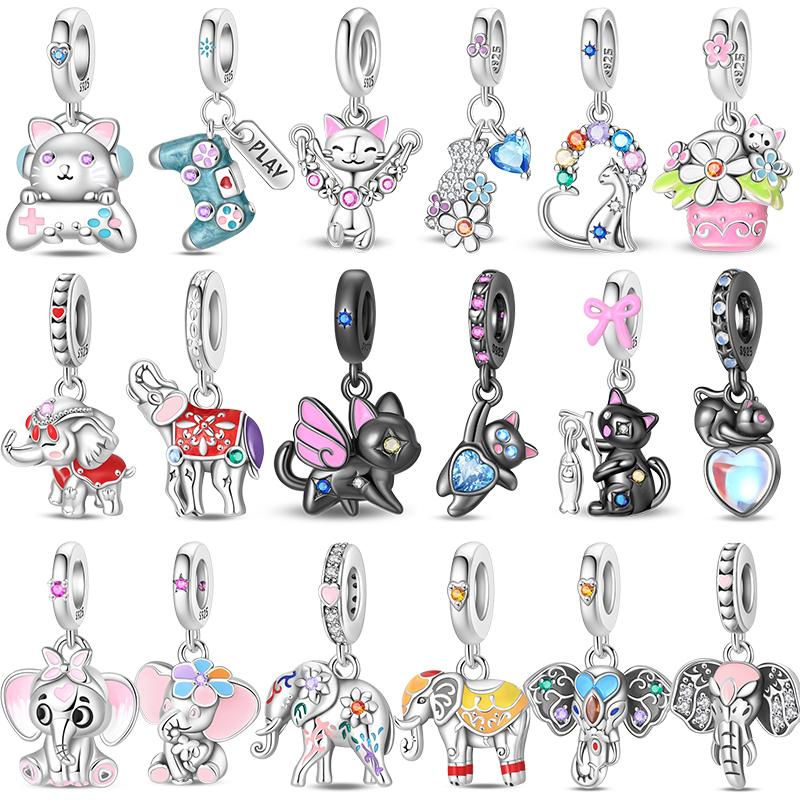 Original Copper Charms Beads Black Cat Colorful Elephant Pendant For Bracelet Women Diy Jewelry Gift Making