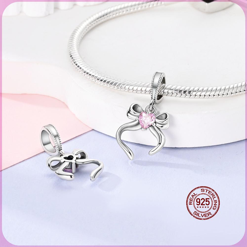 Charm Bow Series Original Pink Series Copper Charm Pendent Dangle Bead Fit Original Bracelet Necklace Diy Women Jewelry Gift