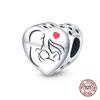 Copper Heart Dog Cat Warm Family Charms Beads Fit 3Mm Original Bracelets Fine Diy Mother'S Day Jewelry Gift